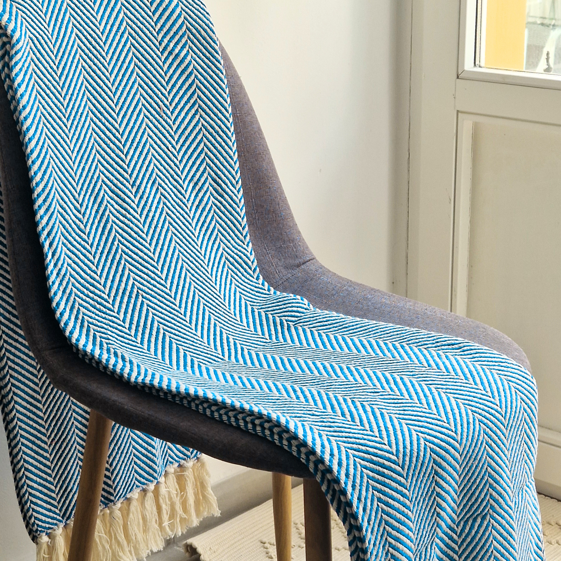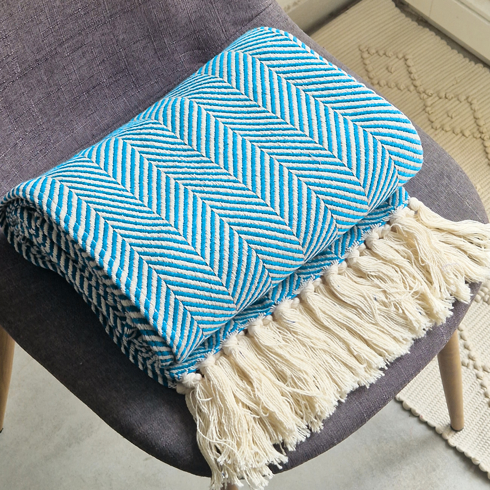 Envolva a sua casa em conforto e autenticidade com esta manta portuguesa em 100% algodão. Macia ao toque e resistente, é ideal para aquecer os dias mais frescos ou para dar um toque acolhedor e elegante à decoração.