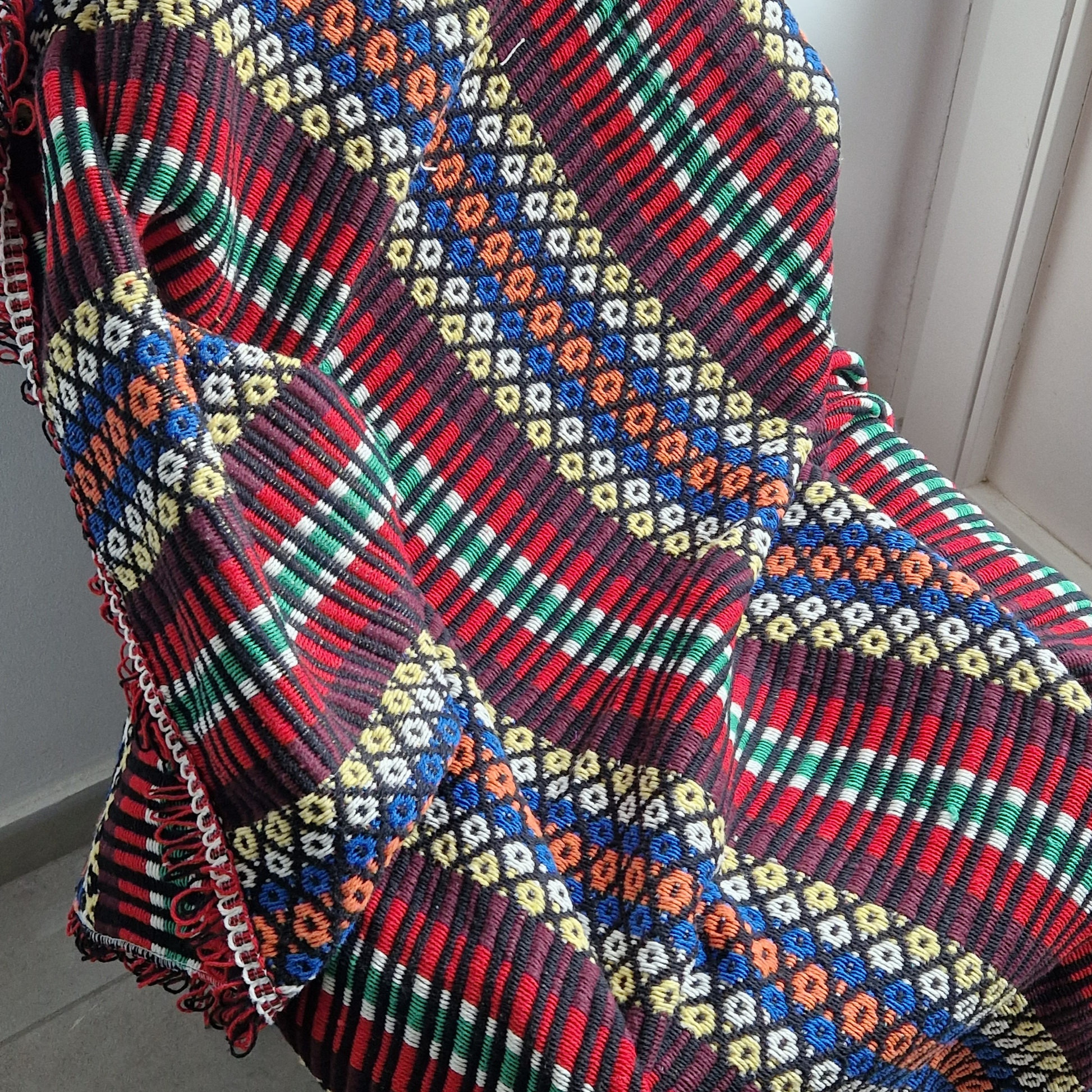 Esta manta é uma bela mistura de tradição e artesanato, confeccionada com 60% de técnicas artesanais e 40% de processos industriais modernos para garantir autenticidade e durabilidade. Confeccionada em 100% algodão orgânico, oferece uma densidade média-alta, proporcionando um toque substancial e confortável. Devido às suas dimensões, resistência e facilidade de manutenção, ela encontrará naturalmente um lugar como colcha, manta no seu sofá ou simplesmente para se aconchegar enquanto assiste TV. Cobrindo metade de uma cama de casal.
